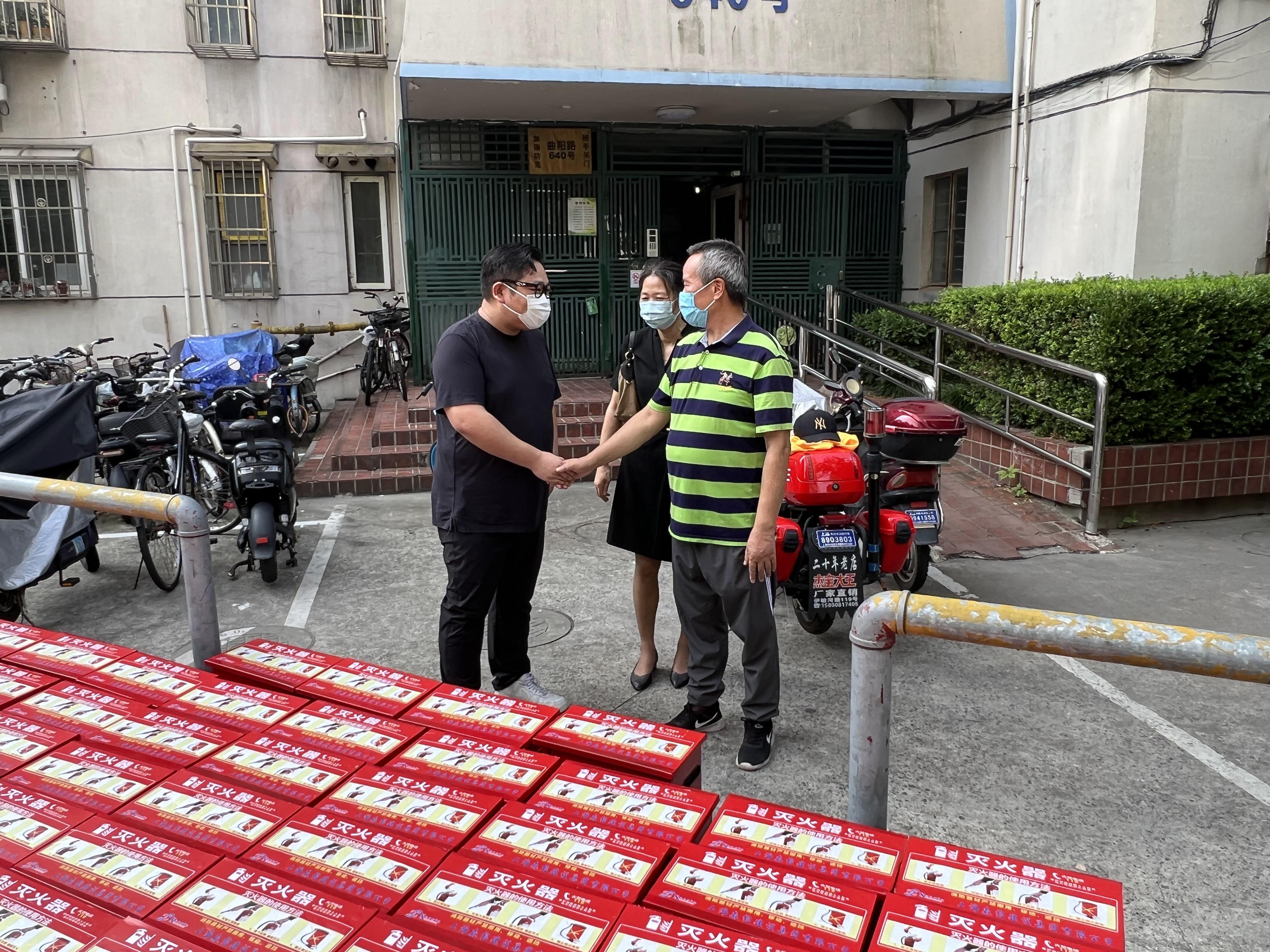 7月21日上午,虹口區(qū)人大代表、集團(tuán)總裁王銘豪向赤三居委捐贈(zèng)了168具滅火器及配套器材箱,曲陽(yáng)路街道黨工委副書(shū)記陳曉峰出席捐贈(zèng)活動(dòng)。