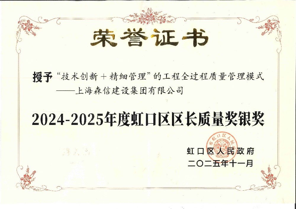 森信集團(tuán)榮獲2024-2025年度虹口區(qū)區(qū)長質(zhì)量獎(jiǎng)銀獎(jiǎng)