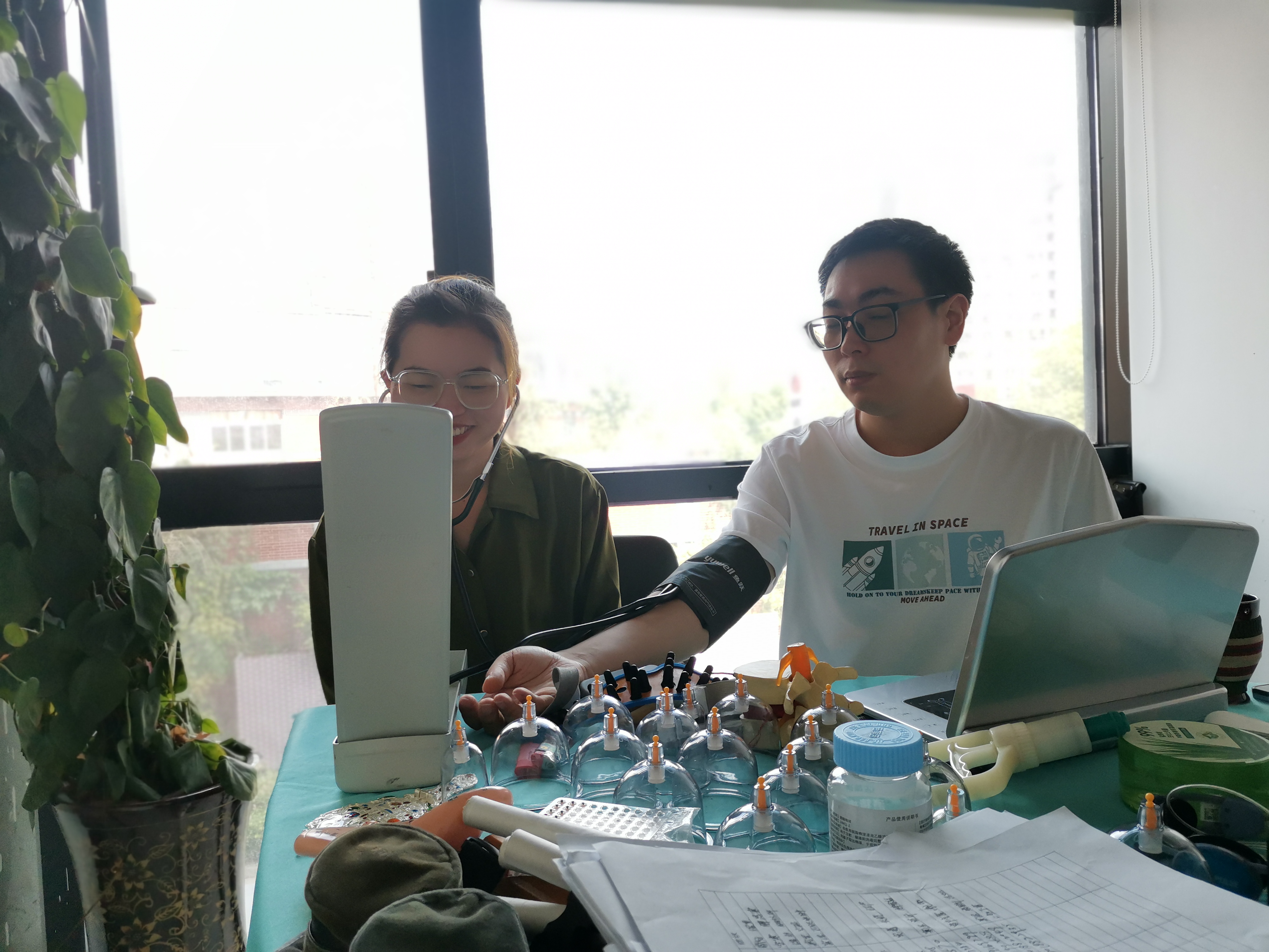活動期間,坐診醫(yī)師通過“望聞問切”對員工進行體質(zhì)辨識,根據(jù)員工不同亞健康癥狀,圍繞飲食、運動、睡眠等日常生活習(xí)慣,詳細講解了調(diào)理方案。針對常見的“三高”、肩周炎、關(guān)節(jié)炎、腰椎、頸椎痛等問題,就如何緩解及預(yù)防,坐診醫(yī)師給予了專業(yè)的治療意見,并通過把脈問診、測血壓、艾灸、拔罐、推拿、理療等中醫(yī)療法,對此類慢性疾病進行了治療,一定程度上緩解了一些員工身體的不適。
