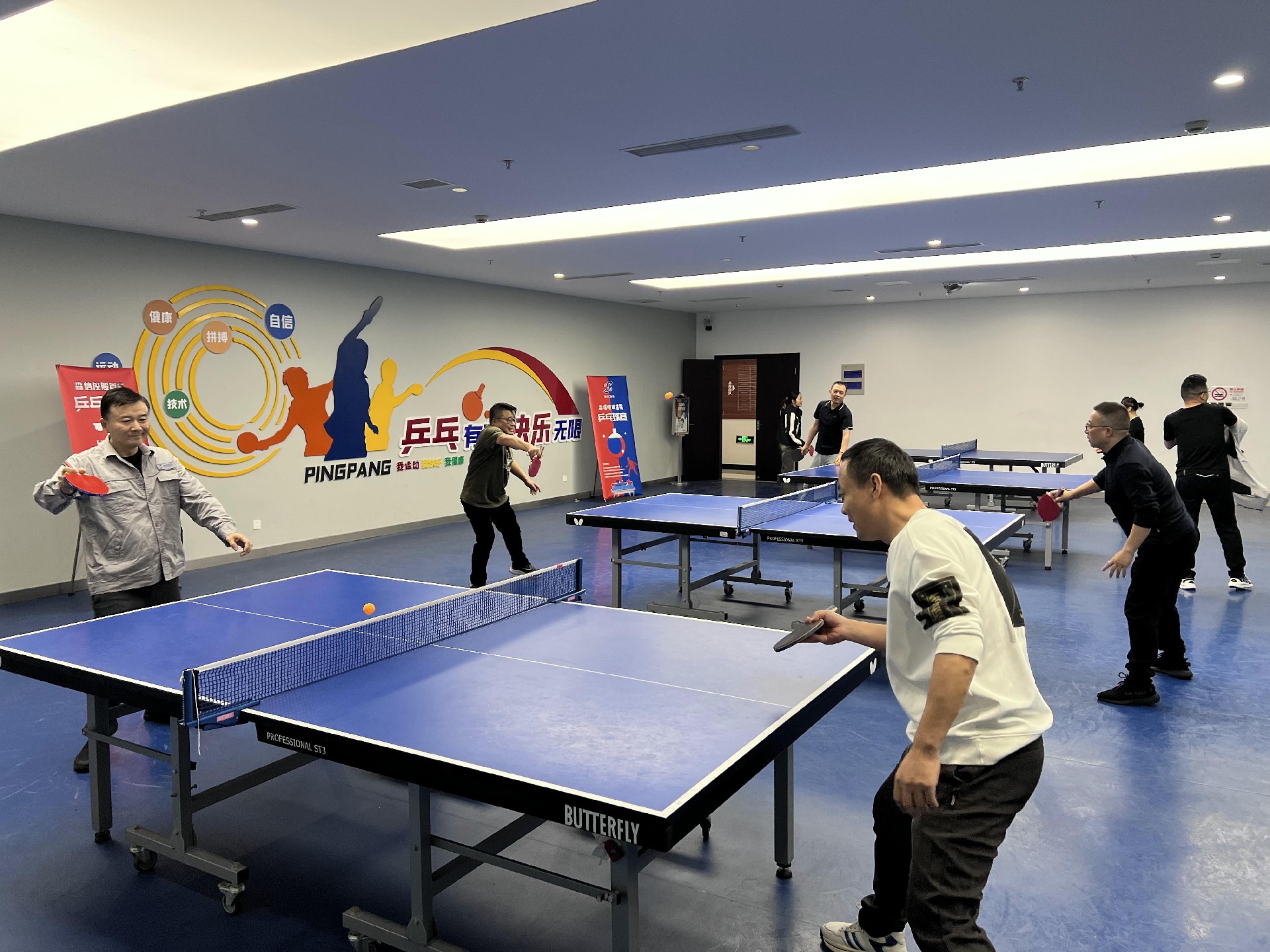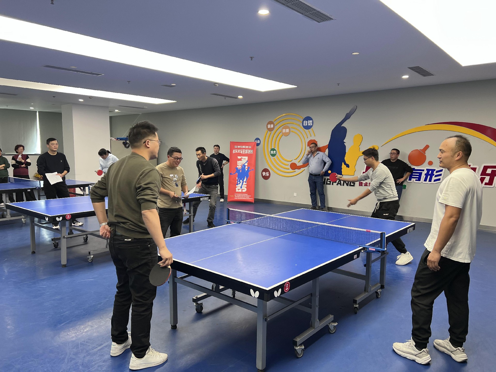 來自集團(tuán)各部門/項(xiàng)目部的30多位乒乓球愛好者參與比賽;比賽采用11分制,單項(xiàng)每場(chǎng)比賽為三局兩勝制。