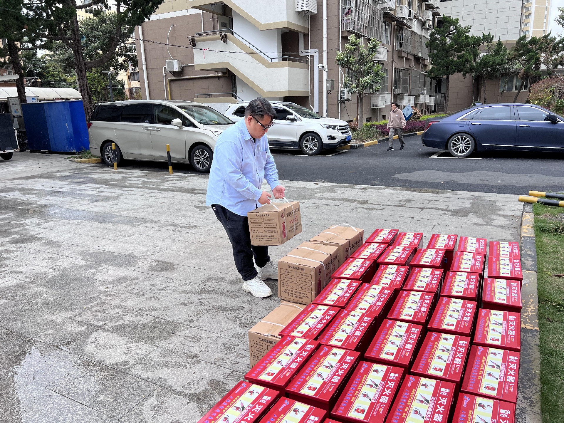曲陽路街道人大工委副主任朱華,虹口區(qū)人大代表、森信集團(tuán)總裁王銘豪,赤三居民區(qū)黨支部姜穎聰?shù)瘸鱿栀?zèng)活動(dòng)。