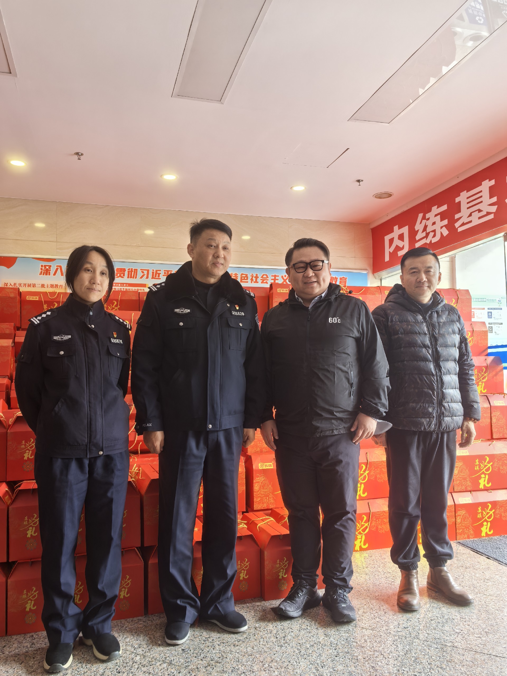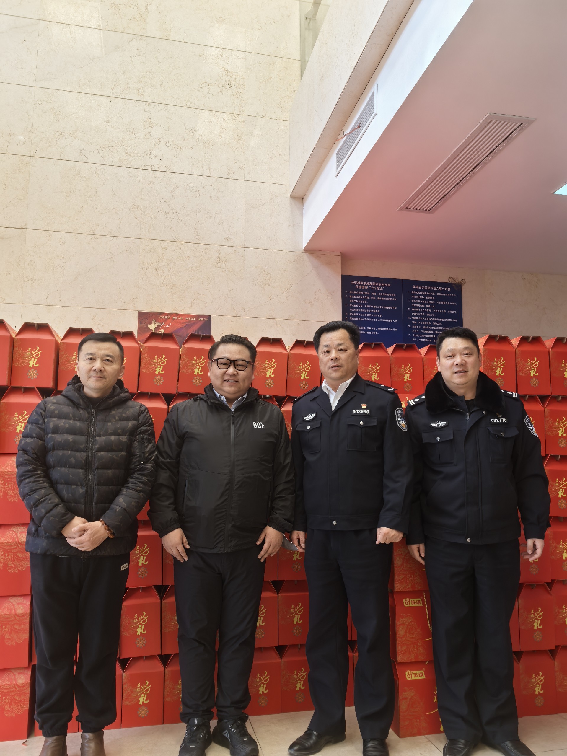 在慰問現(xiàn)場,王銘豪總裁與接待人員熱情握手、親切交談,詳細了解他們的工作、生活情況,對他們的辛勤付出表示衷心感謝,對他們“舍小家、為大家”,為群眾的平安幸福保駕護航表示崇高敬意,叮囑他們在寒冷的冬季注意防寒保暖,保重身體。